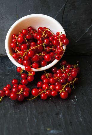 White bowl with red currant berries