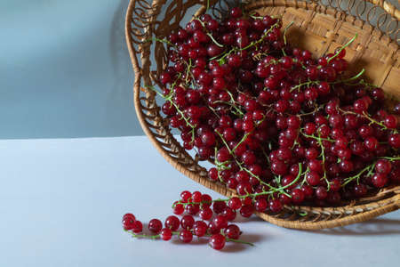Fresh red currant berries on a light background with a place for your text. Poster.