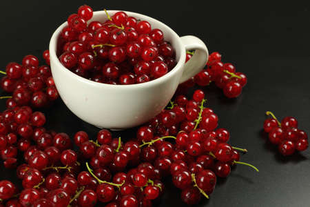 The mug is filled with red currant berries.