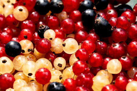 The heap of summer berries - red, black and white currant