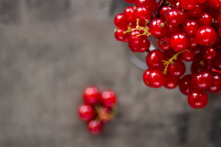 Red currants scattered over a gray texture background. High quality photo