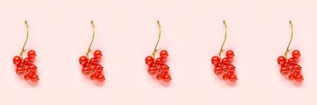 Berry pattern. Banner made from twigs of red currant berry on pink paper background. Minimal style Creative Flat lay Top view.