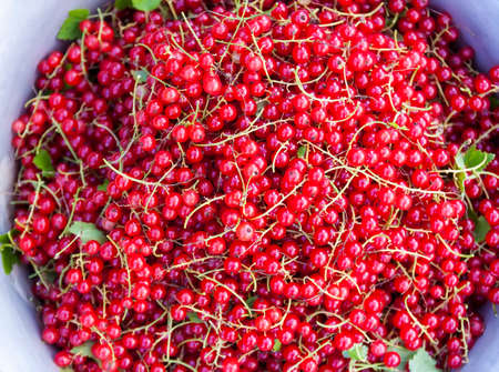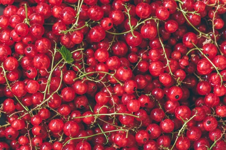 Freshly picked redcurrants background, top view, healthy nutrition