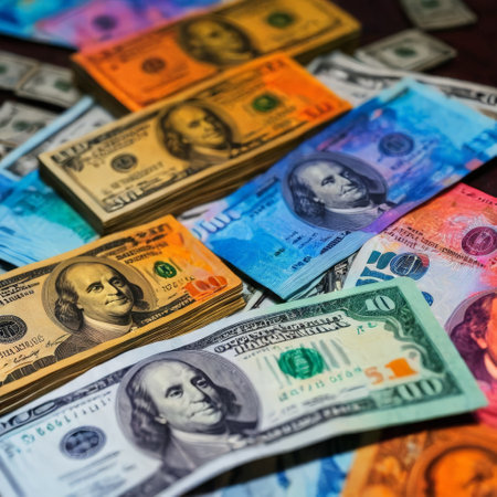 abstract backdrop with USA dollar banknotes, selective focus, soft focus