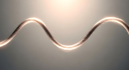 A macro 3D render of a single, thick strand of hair with a healthy, shiny texture. The strand is wavy and illuminated by a soft light, representing concepts of hair care, biology, strength, and beauty products.
