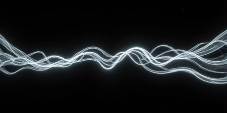 Smooth wavy spark streams create dynamic energy lines against a dark background