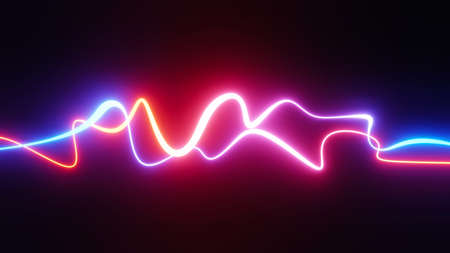 Abstract colorful neon glowing light background. Speed light illuminated. Florescent on the dark scene. Curvy moving line shape. 3D render.