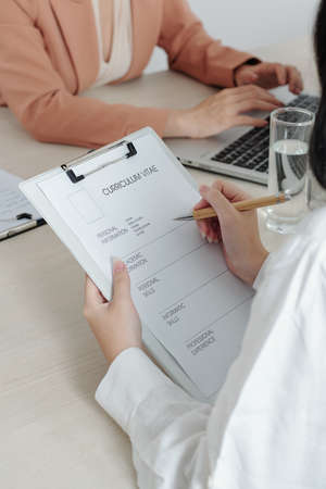 Close up of resume application on HR manager office table