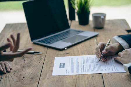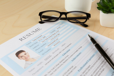 Businesswoman fill resume application information on the desk, presents the ability for the company to agree with the position of the job.