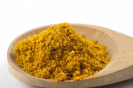 Yellow Fragrant seasonings on wooden spoon. Stock Image.