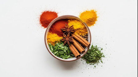 Spices and herbs isolated on white background. Food and cuisine ingredients.