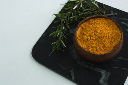 Fresh turmeric powder in the ceramic bowl - Curcuma longa