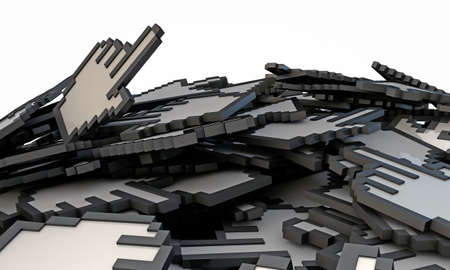 View of a Pixeled black and white mouse pointer displayed on a futuristic interface - Connection concept