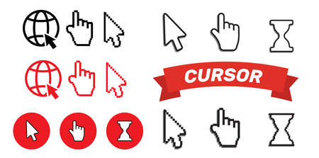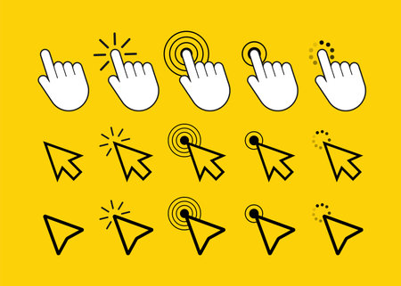 Computer mouse click. Cursor icon. Isolated vector elements. Hand and arrow collection. EPS 10