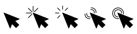 Click icon. Cursor icon. Computer mouse click cursor black arrow icons.