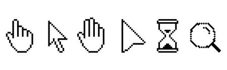 Pixel cursors icons mouse hand arrow. Mouse computer cursor.