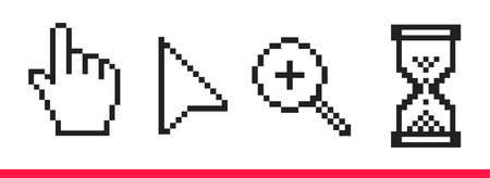 Pixel cursors icons - mouse cursor, hand pointer, hourglass. vector illustration.