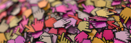 Web design concept: Painted multicolor Mouse Cursor icons on Torn Paper background, 3d render