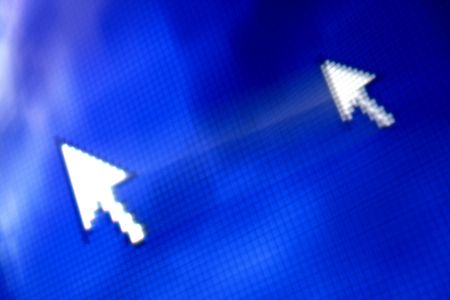 Macro detail of computer cursor on the screen formed by RGB pixels