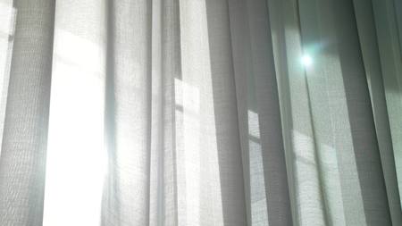 A transparent curtain on the window, gently moved by the wind. sunlight