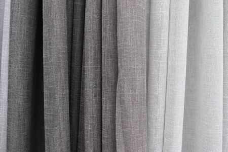 background gray beige linen curtain close up, side view