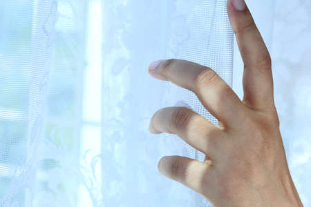Woman hand on the curtain, stock photo