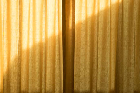 Curtain in the room, which is exposed to the sun, shining light.(soft focus)