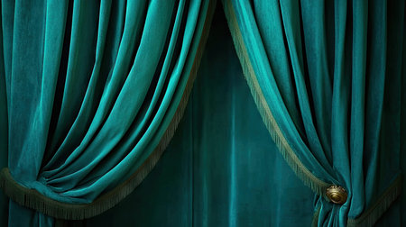 This image features elegant turquoise velvet drapes with rich textures, ideal for enhancing any interior space with warmth and sophistication.