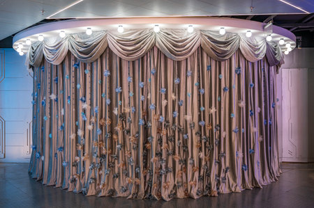 Close-up of closed curtain with light spots in a theater