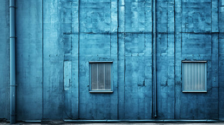 A blue corrugated iron sheet wall, industrial background and texture.