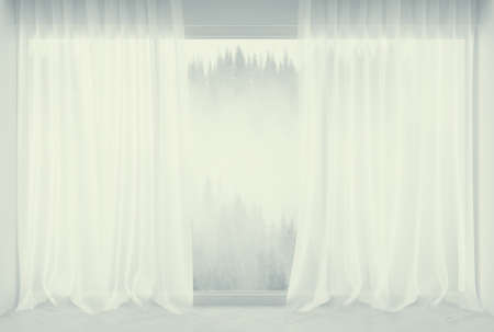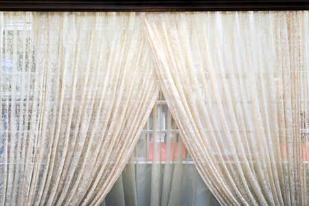 Close up of curtains and glass window, Curtain interior decoration in living room