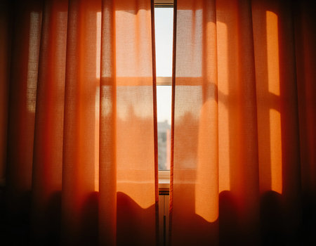 Window curtains in the morning light. Selective focus with shallow depth of field.