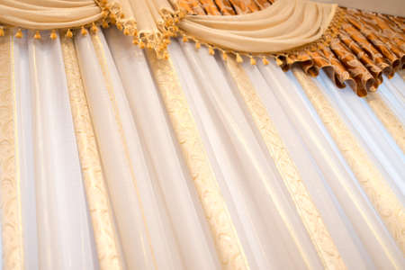 Bright and soft morning light through the white curtain. Home living and interior decoration. luxury background. The windows are decorated in an elegant style.