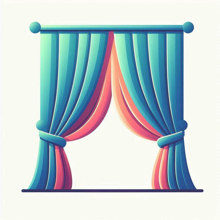 Pastel turquoise blue green empty wall in room with coloured silk curtain drapes. Mock up Template for product presentation. Living, gallery, studio, office concept. 3D rendering