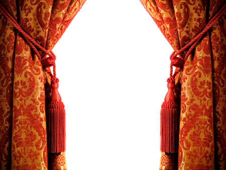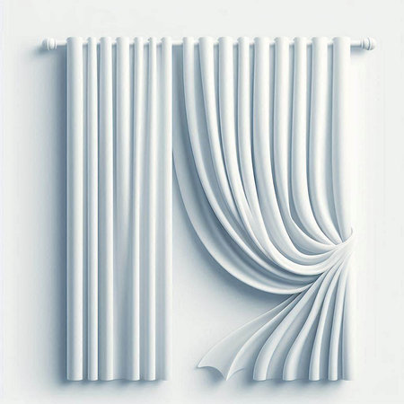 Luxury theatrical white curtain with a copy space in the middle isolated on white background, space for text modern design
