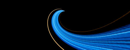this abstract image features colorful neon light trails against a dark backdrop, creating a modern look