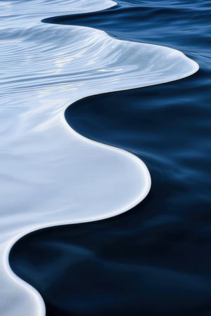 This image captures the serene flow of water with smooth curves and subtle reflections. An abstract representation of tranquility in nature, it evokes calmness.