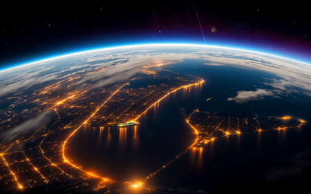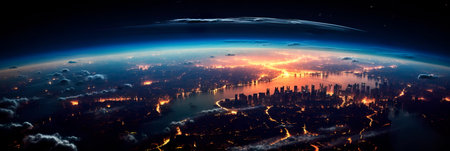 View of Earth from Space with City Lights in the Background A Stunning Overview of Urban Civilization at Night