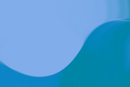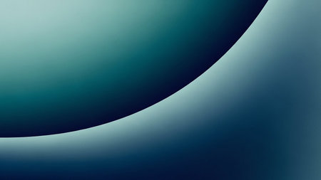 An abstract background features a smooth, flowing curve in shades of teal and navy blue with a soft gradient.