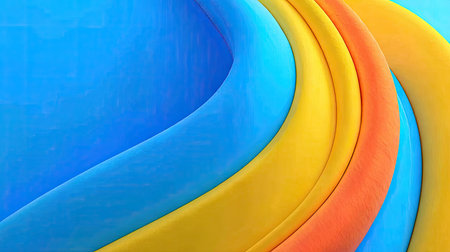 This image presents an abstract composition of flowing, curved forms in vibrant colors of blue, yellow, and orange. The design showcases smooth gradients and a layered effect, creating a sense of depth and movement. Suitable for various applications, it could be used in advertising or digital design projects.