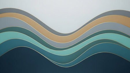 Elegant curved shapes blend harmonious gray and teal tones, creating a tranquil ambiance that enhances modern interior spaces. The abstract design evokes serenity and inspiration.