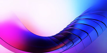 Abstract image showcasing a curved metallic structure with vibrant color gradients and highlights