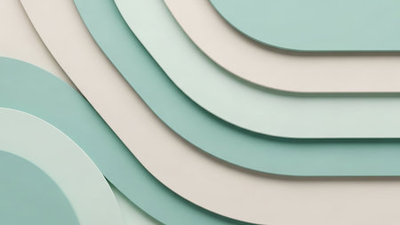 Overlapping curved shapes in soft pastel mint green and cream create a gentle, flowing abstract background with a subtle layered effect.