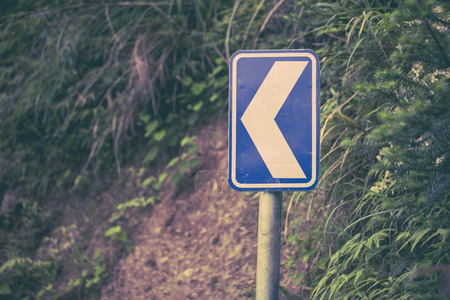 A left arrow sign board on a roadside in the forest area of dehradun city. Uttarakhand India