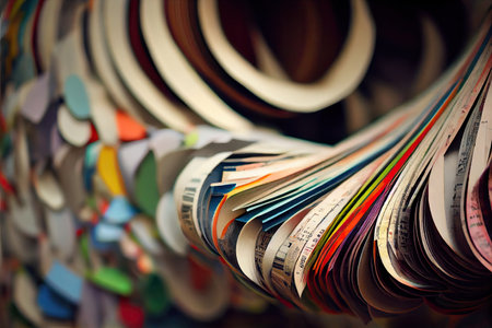 a paper streamer made of recycled materials, such as old newspaper and magazines, created with generative ai
