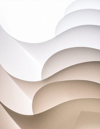 This artistic image showcases the elegant curves and fluid motion of white paper, creating captivating shadows and a minimalist design perfect for various creative projects.