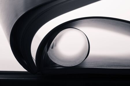 Close-up open book with selective focus, close-up. Abstract monochrome background