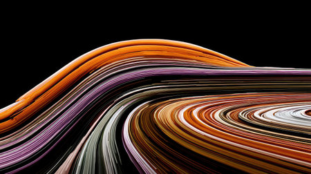 abstract colorful twisted lines on black background - 3d render illustration