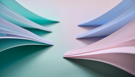 Colorful abstract background with curved sheets of paper, close-up