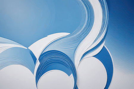 Abstract design featuring white paper sheets artistically fanned into shapes.